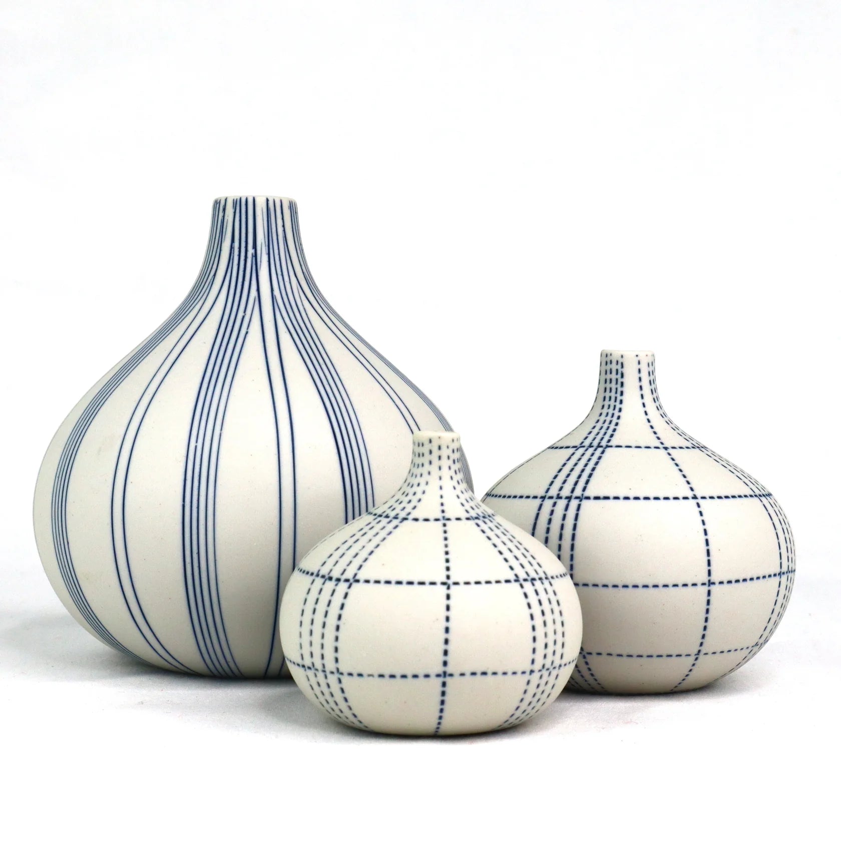 Spherical ceramic vases, reminiscent of seed pods or molluscs, these delightful little bud vases will complement any display.