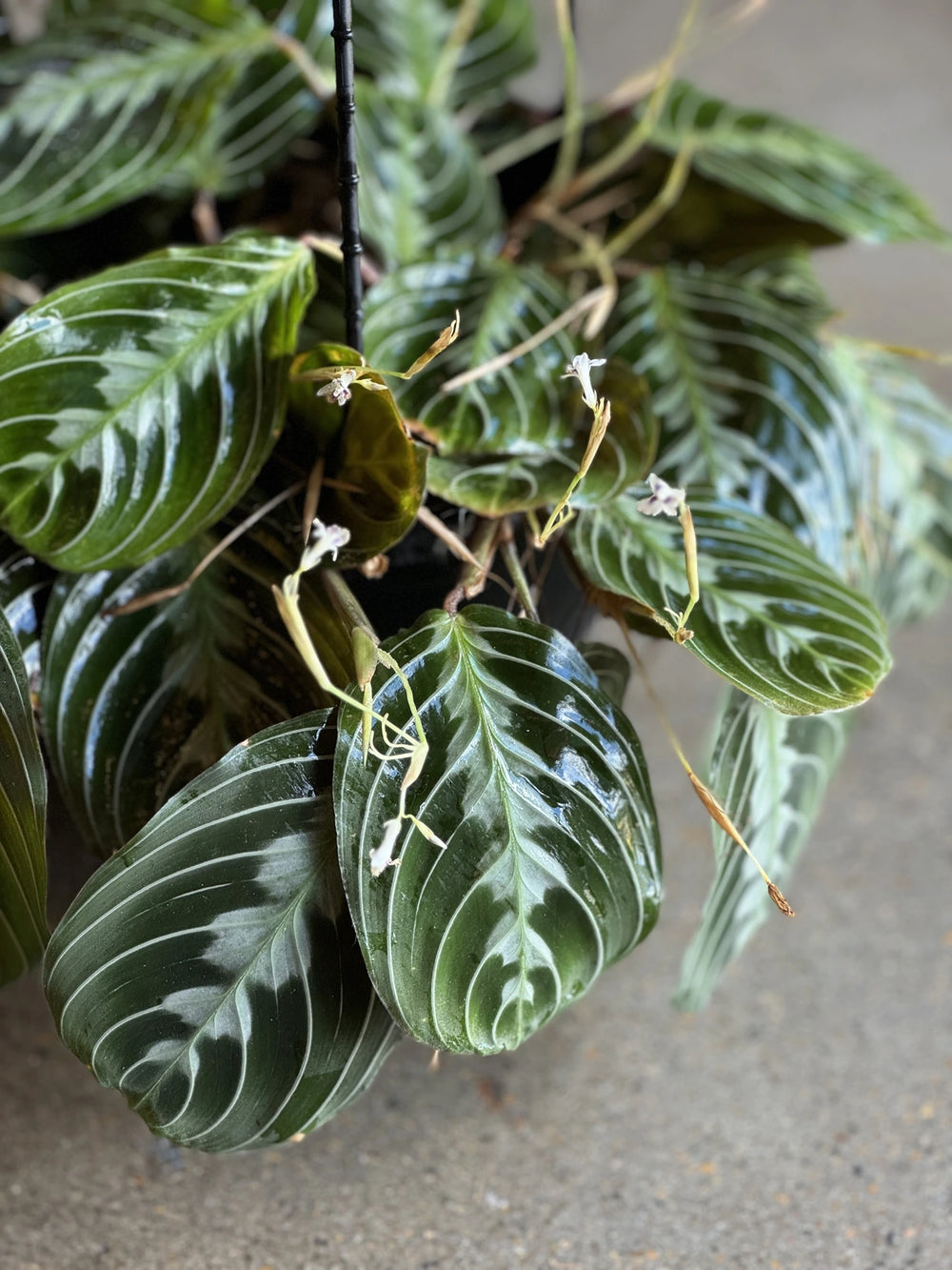 Black Maranta, often called the Prayer Plant, is appreciated for its striking, dark-toned leaves accented by subtle patterns of lighter green.