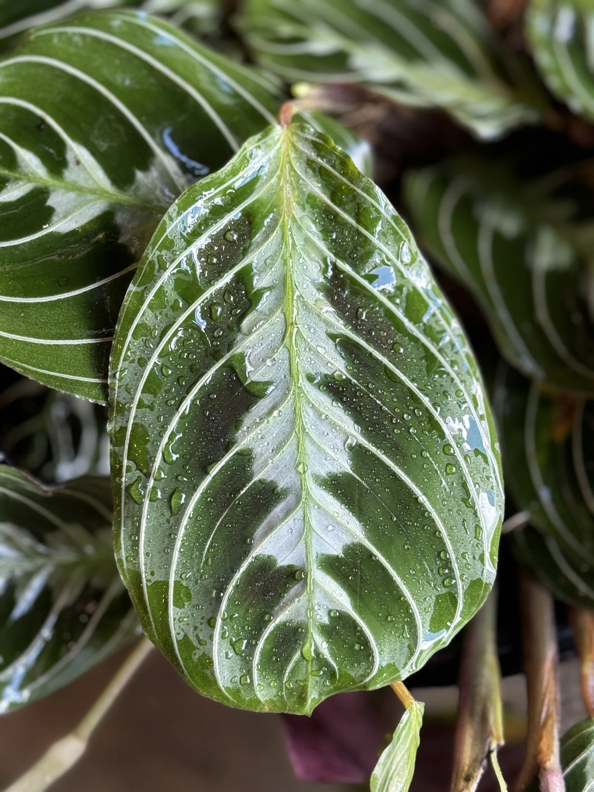 Black Maranta prefers bright, indirect light, although it can adjust to moderate light levels. Water when the top layer of soil feels slightly dry, maintaining moisture without allowing the pot to become waterlogged. Misting is optional but may help the plant remain vibrant, especially in drier conditions. Keep it away from direct sunlight to prevent leaf damage, and ensure a consistently warm, draft-free environment. Prune any discoloured leaves as needed to encourage fresh growth and retain its appealing appearance.
